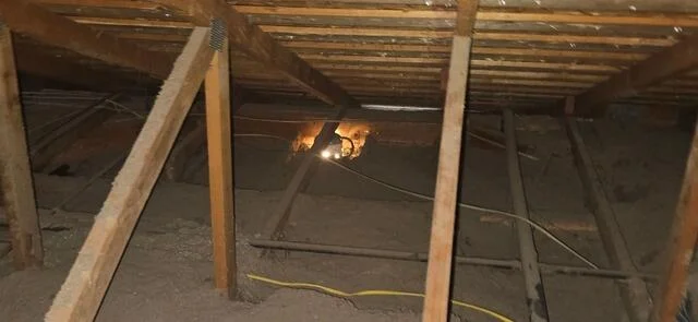Upon inspection of the attics, we found that both attics had about 5-6 inches of old, dirty insulation. Dirty insulation is an indicator that there is air leakage occurring between the attic and the living spaces of the home.
